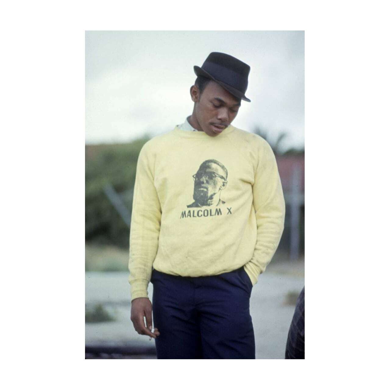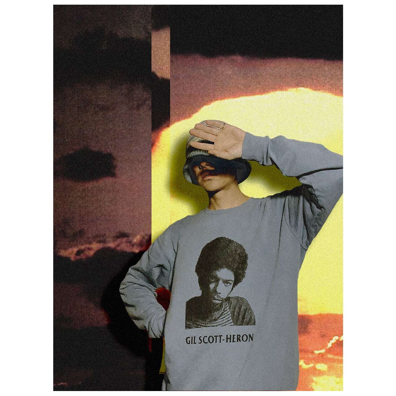 1966年ロサンゼルス、ビル・レイがワッツ暴動後に撮った青年の写真にインスパイアされ、制作したスエットシャツをTシャツへアダプト。